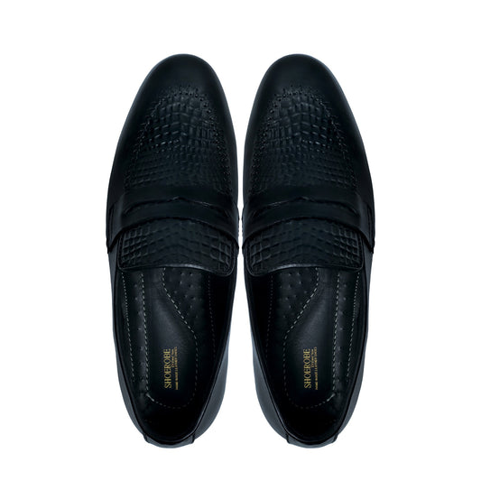 Black Patterned Loafers for Men